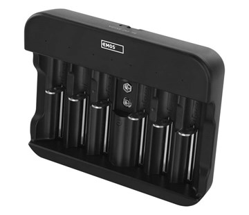 druh nabíječky inteligentní, připojení nabíječky USB, napájení USB 5 V/2 A, velikosti nabíjených článků AAA, AA, C, D, 9 V, typ nabíjených baterií NiMH, počet nabíjecích kanálů 7, počet nabíjených baterií současně 1 až 6, nabíjecí proud AA 500 mA, nabíjecí proud AAA 500 mA, záruční doba 2 roky