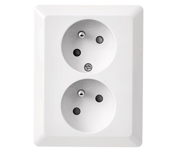 produkt: zásuvka dvojnásobná s ochrannými kontakty a dětskými clonkami, typ: 250 V~/16 A max., barva: bílá (lesk), způsob montáže: do krabice, krytí: IP20,