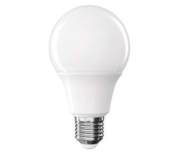 patice (uchycení žárovky) E27, barva světla studená bílá, náhrada za žárovku 75 W, tvar A60, světelný tok 1 055 lm, teplota chromatičnosti 6 500 K, příkon 9,5 W, energetická třída E, životnost 30 000 hodin, záruční doba 3 roky, napětí 230 V~/50 Hz, rozměr 60 × 60 × 109 mm