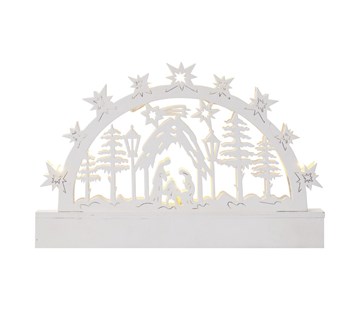 produkt: betlém, barva světla: teplá bílá, rozměr: 23 × 14,5 cm, použití: vnitřní, časovač, dálkový ovladač: ne, typ napájení: baterie (3× AA), zdroj svícení: LED, počet LED: 5, příkon: 0,2 W, výstupní napětí: 3 V DC, krytí: IP20, životnost: 10 000 hodin, materiál: dřevo, záruční doba: 2 roky