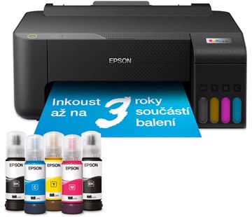 |  | Se zadním podavačem papíru na 100 listů, tiskem fotografií bez okrajů (až do 10 × 15 cm) a rychlostí tisku až 10 stran za minutu snadno a rychle zvládnete každou práci. Jednoduchý a bezproblémový inkoustový tankový systém umožňuje doplňování z lahviček. Navíc se systémem lahviček s bajonetovým mechanismem EcoTank nevznikne žádný nepořádek. |