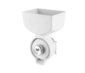 Mlýnek na obiloviny, sóju, luštěniny, rýži, přípravu alternativní, bezlepkové mouky,umožňuje loupání sóji, mlecí kameny o průměru 85 mm, Obj násypky pro 1 kg surovin, Regulace hrubosti mletí, Jednoduché a rychlé sestavení, Obsah násypky 150 g, Nízká hlučnost, bílá.