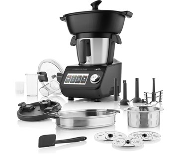 PŘÍKON: 1000 W (topné těleso), 600 W (mixování), Nerezová nádoba o objemu 3,5 l s možností mytí v myčce na nádobí, Dotykový TFT displej, Průběžná aktualizace vložených receptů přes WIFI, Zabudovaná váha, Plynulá regulace otáček v rozsahu 125-5000/min. a pulse, Nastavení teplot v rozsahu 37-130 °C, M