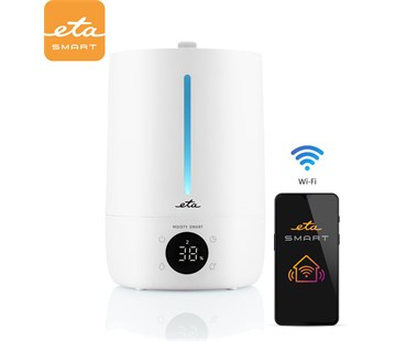 Mezi nesporné výhody tohoto zvlhčovače patří to, že umožňuje připojení k Wi-Fi. Díky aplikaci ETA Smart jej budete moct ovládat i na dálku pomocí chytrého mobilního telefonu či tabletu s kompatibilitou Android 6.0 a vyšší nebo iOS 11 a vyšší. Ovládání je zcela intuitivní a poradíte si s ním velice snadno. Kolem přehledného LED displeje se nacházejí tlačítka zap./vyp., regulace intenzity vlhkosti, nastavení úrovně vlhkosti a časovače. Přístroji disponuje pro váš přehled také vodoznakem. |