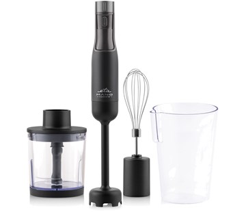 tyčový mixér • DC motor s příkonem 1000 W • titanový čtyřramenný nůž BlendeX • plynulá regulace rychlosti (9 stupňů) • LCD displej se zobrazením doby provozu • ergonomický tvar rukojeti • délka přívodního kabelu 1,2 m • příslušenství: mixovací nástavec ze slitiny hliníku, šlehací nástavec, sekáček 500 ml, pracovní nádoba o objemu 600 ml