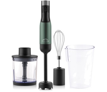 tyčový mixér • DC motor s příkonem 1000 W • titanový čtyřramenný nůž BlendeX • plynulá regulace rychlosti (9 stupňů) • LCD displej se zobrazením doby provozu • ergonomický tvar rukojeti • délka přívodního kabelu 1,2 m • příslušenství: mixovací nástavec ze slitiny hliníku, šlehací nástavec, sekáček 500 ml, pracovní nádoba o objemu 600 ml