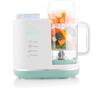 kuchyňský robot • vhodný pro přípravu dětských příkrmů • příkon 700 W při ohřevu a 120 W při mixování • 6 funkcí (vaření v páře, mixování, ohřívání, udržování teploty, sterilizace předmětů, automatické odvápňování) • pracovní nádoby z tritanu bez BPA • protiskluzové nožičky • dvojitá bezpečnostní ochrana • DC motor • tichý chod • 2 rychlostní stupně při mixování • vyklápěcí LCD displej • 280ml zásobník na vodu • 90cm přívodní kabel • příslušenství – 2 nádoby na vaření v páře a sterilizaci, sítko, ochranný kryt, stěrka, plastová pinzeta