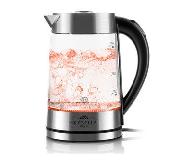 rychlovarná konvice • sklo • objem 1,7 l • příkon 2200 W • nastavení teploty (50, 70, 80 90 a 100 °C • funkce KeepWarm • středový konektor STRIX • skryté topné těleso • automatické vypínání • bezpečnostní pojistka proti přehřátí a chodu naprázdno • prostor pro navinutí napájecího kabelu • vícebarevné vnitřní osvětlení konvice podle zvolené nastavené teploty