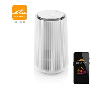 čistička vzduchu • příkon 32 W • 4 stupně filtrace (HEPA 13, uhlíkový, nylonový pre-filtr, UV dezinfekce) • možnost ovládání pomocí aplikace ETA Smart (pro vzdálené ovládání čističky, včetně přehledu opotřebení všech filtrů) • možnost volby ze tří úrovní nočního dekorativního podsvícení teplým světlem
