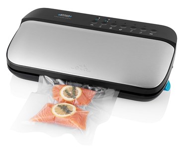 svářečka fólií/vakuovačka • automatický provoz • příkon 120 W • sací výkon -0,8 bar • funkce rychlého marinování (zhruba 20 minut) • 2 intenzity vakuování • funkce samostatného vakuování • funkce samostatného svařování • režim pro suché a vlhké potraviny • světelná signalizace • integrovaný řezák rolek • prostor pro uložení fólie • bezpečnostní pojistka proti přehřátí • napájecí kabel 1,1 m • příslušenství (vakuový box s kapacitou 1000 ml, hadička na odsávání, fólie, sáčky)