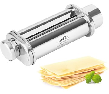 Nástavec na válení těsta, Určeno pro všechny kuchyňské roboty ETA s výstupem na mlýnek na maso a mlýnek na maso ETA6075 Besto, Pro přípravu celé řady plochých těstovin (lasagne, raviolli), Dokonale vyválí těsto až v 8 různých tloušťkách, Max. šířka plátu 140 mm, Nerezové provedení