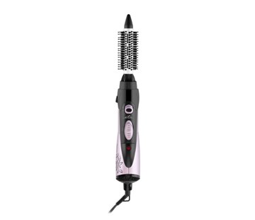 horkovzdušná kulma na vlasy • příkon 1000 W • 2 rychlosti proudění vzduchu a teploty • funkce ionizace • 1,8m otočný přívodní kabel • světelná signalizace provozu • příslušenství – ondulační nástavec, hřebenový kartáč, kulatý kartáč, kartáč s pružnými hroty, kartáč se zásuvnými hroty, žehlicí nástavec, koncentrátor vzduchu