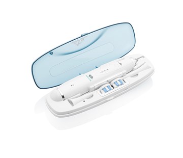 Elektrický zubní kartáček není je otázkou pohodlí. Svými rychlými kmity dokáže odstranit plak a namasírovat dásně mnohem efektivněji, než by se vám to kdy podařilo ručně. Navíc bez zbytečného tlaku, který může být příčinou dalších potíží. Model ETA Sonetic 4707 90000 ocení zejména ti, kteří často cestují a chtějí si vysoký standard ústní hygieny dopřát i mimo domov. Jeho součástí je rovněž praktické cestovní pouzdro s kompaktními rozměry a integrovaným nabíjením. To se postará nejen o bezpečné převážení kartáčku, ale zároveň obsahuje vestavěný UV sanitizér. Po vložení kartáčku se aktivuje UV dezinfekce, která na štětinkách zničí 99,9 % nebezpečných bakterií. Stačí jen připojit microUSB kabel podobně, jako když nabíjíte telefon. |