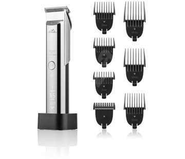 Módní sestřih i upravené vousy si můžete dopřát i bez toho, aniž byste marnili čas a peníze v kadeřnictví. ETA Tyler 9342 90000 je vybaven 5 rychlostmi stříhání a 6 hřebenovými nástavci, s nimiž si můžete opravdu vyhrát a dosáhnout profesionálních výsledků. Pro milovníky kratších sestřihů jsou zde nastavitelné délky 0,8, 1,2, 1,6 a 2 milimetry, nástavce pak využijete pro délky 3 až 18 mm. Nechybí ani nástavec pro prostříhávání hustých kadeří. Odnímatelná zastřihovací hlava s titanovo-keramickým ostřím poskytuje špičkové výsledky a může se pochlubit velice dlouhou trvanlivostí. I v domácích podmínkách si tak můžete dopřát profesionální kvalitu. |
