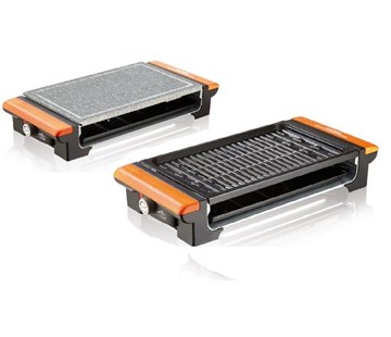 Při grilování si můžete vybrat ze 2 vyměnitelných desek. Jedna z nich vyrobena z litiny a má vyjímatelný rošt. Tato mřížkovaná deska je především vhodná pro rychlejší přípravu zejména krvavých steaků. Na rozdíl od ní je kamenná plocha vhodnější pro důkladné a pomalé propečení masa i zeleniny. Gril disponuje elektrickým příkonem 1 300 W. |