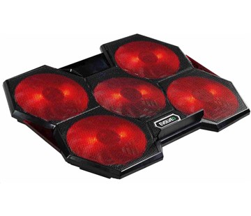 •Rozměry:410*293*30mm•Ventilátory:5x140mm•Materiál:plast a kov•Jmenovité napětí:DC 5V •Proud:0,75A•Regulace rychlosti otáček•Kompatibilní s notebooky 11-17,3•Hlučnost: 20dBA•konektory na zadní části: 2 x USB 2.0•Doporučené napájecí USB 3.0•kabel 65cm USB 2.0 - USB 2.0•Výkon: 3,75W•Hmotnost: 1015 g