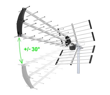 Venkovní pasivní anténa, pro příjem DAB+/DVB-T2, rozšiřitelná o zesilovač, filtr LTE, 4G, 5G Vertikální nastavení polohy +/- 30° zvyšuje zisk antény ve srovnání s anténam