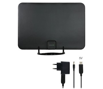 Aktivní pokojová anténa, pro příjem FM/DAB+/DVB-T2, zesilovač, zisk 45 dBi , filtr LTE, 4G, 5G, napájecí adaptér, konektor IEC male