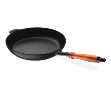 Litinová pánev kulatého tvaru s dřevěnou rukojetí
