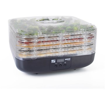 |  | Spotřebič je vybaven celkem 6 čtvercovými síty o šířce 32 cm. U jednotlivých sít můžete jednoduše nastavit výšku. Bez problémů tedy usušíte nejen malé, ale i větší potraviny. Síta jsou navíc vyrobena z průhledného materiálu. V průběhu sušení tak lze potraviny kdykoli zkontrolovat. S pomocí zabudovaného termostatu je možné nastavit požadovanou teplotu, a to v rozmezí od 40 do 70 °C. Bezpečný provoz zajišťuje tepelná pojistka, která přístroj vypne v případě, že se nadměrně zahřívá. |