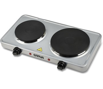|  | K dispozici máte dvě elektrické plotýnky s odolným litinovým povrchem. Větší plotýnka v pravé části vařiče se může pochlubit průměrem 18,5 cm a poskytuje dostatek prostoru i pro větší hrnce a pánve. Menší plotýnka pak nabízí průměr 15,5 cm. Samozřejmostí je samostatné zapalování pro každou z plotýnek. S pomocí otočných ovladačů pohodlně nastavíte požadovanou intenzitu ohřevu. Vybírat můžete z 5 stupňů. výkonu. Příkon elektrického vařiče G3Ferrari G1012200 je 2500 W. |