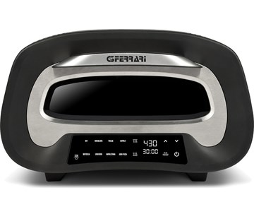 Dvojitý hřev horní 850 W a spodní 850 W, teplota 80° – 430°C, 60minutový časovač, digitální displej s 8 programy, funkce paměti, vnitřní osvětlení, studené stěny s nuceným větráním, dveře s trojitým sklem pro maximální izolaci, bohaté příslušenství: pizza kámen, kolečko na krájení a další, 1700 W