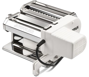 strojek na nudle • možnost přípravy 5 druhů těstovin (lasagne, tagliatelle, špagety, reginette a fettuccine) • 2 režimy (manuální s klikou, automatický s motorem) • 2 rychlosti + pulzní funkce • 9 možností nastavení tloušťky • tělo z nerezové oceli • válečky z hliníku • doba nepřetržitého provozu až 60 min • příkon 90 W