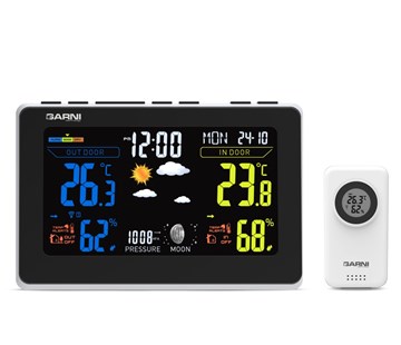 | Máte pocit, že na televizní předpověď počasí již delší dobu není spoleh? Pořiďte si raději meteostanici Garni 570 EASY III, která vám zajistí perfektní přehled o počasí. Dostatečně velký barevný displej vám poskytne informace o venkovní a vnitřní teplotě. Měření teploty probíhá s přesností na 0,1 °C. Na displeji naleznete také předpověď počasí, nebo aktuální čas a datum. Přesné řízení času a data zajišťuje signál DCF-77. Nemusíte se tedy o nic starat. |  |