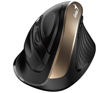 Myš, bezdrátová, vertikální, 1600DPI, 6 tlačítek, tichá, černo-zlatá