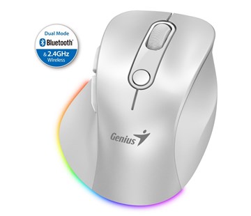 Myš, bezdrátová, optická, 2400DPI, 6 tlačítek, Bluetooth, 2,4GHz, USB-C nabíjení, tichá, 7barevné podsvícení, bílá