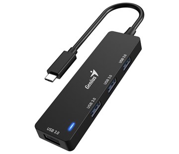 USB Hub, externí, USB-C na 4× USB 3.0, 15cm, černý