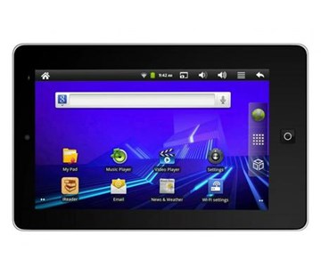 7" TFT LCD obrazovka s pod svícením LED, 800×480 pixelů. Výkonný 1GHz procesor ARM11. Sledujte filmy v rozlišení HD, zahrajte si hry, prohlížejte fotky, pracujte s kancelářskými dokumenty. Připojte tablet k pouzdru s klávesnicí a máte malý notebook. Obchod Play k dispozici. Vybírejte a stahujte z tisíců aplikací na Google Play. 3D hry. Akcelerátor 3D her zvládá jednodušší 3D hry. G sensor. Zařízení automaticky odpovídá na natočení obrazovky.