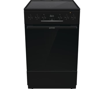 | Elektrický sporák Gorenje GECS5C70BPA kombinuje výhody sklokeramické varné desky a elektrické trouby. Spotřebič v elegantním černém provedení nabízí celkem 4 Hi-light varné zóny. K dispozici máte dvě varné zóny o průměru 14,5 cm a dvě varné zóny s nastavitelným průměrem. Velmi praktická je především oválná Hi-light varná zóna, kterou naleznete v zadní části varné desky a nabízí dostatek prostoru pro vaření v nádobí oválného tvaru, jako jsou například pekáče. Sporák je vybaven také úložnou zásuvkou, do které můžete umístit pečicí formy i další nádobí. |  |