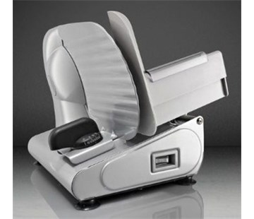 S pomocí rotačního kolečka a zarážkové desky si můžete určit požadovanou tloušťku krájení, a to od 1 do 15 mm. Přítomný vozík krájenou potravinu vede přímo k noži. K dispozici zde máte také speciální držák sloužící pro bezpečné krájení menších kousků. Neméně důležitá je bezpečnostní pojistka, která zastaví proces krájení v případě hrozby poranění. Pro zajištění stabilního a bezpečného umístění na pracovní desce je kráječ vybaven pogumovanými nožkami. Samozřejmostí je servírovací podnos.
