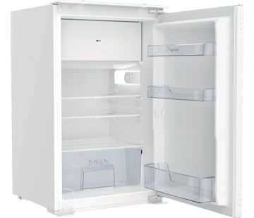 vestavná kombinovaná chladnička • energetická třída E • objem chladničky 104 litrů • objem mrazicí přihrádky 14 litrů • hlučnost 39 dB • klimatická třída N–ST • elektronické ovládání • automatické odmrazování • zásuvka na ovoce a zeleninu• hluboká police na láhve ve dveřích • vnitřní osvětlení • možnost změny směru otevírání dveří • rozměry 88×54×54 cm • vestavný spotřebič bez dekorativního opláštění