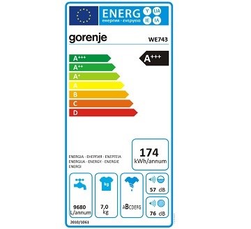 Předem plněná pračka Gorenje vás potěší i svým hospodárným provozem, díky kterému se řadí do energetické třídy A+++. Nízkou spotřebu skvěle doplňuje tichý chod pračky. Při běžném praní nepřekročí 57 dB. Během odstřeďování, kdy dosahuje rychlosti maximálně 1400 otáček za minutu, nepřesáhne hlučnost 76 dB.