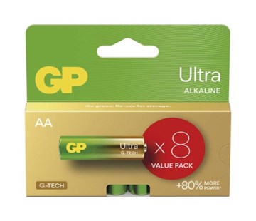 chemické složení: alkalické|hmotnost: 23 g|kapacita: neuvádí se|kategorie/řada: Ultra Alkaline|max. skladovatelnost: 10 let|možnost nabíjení: ne|napětí: 1,5 V|počet nabíjecích cyklů: nenabíjecí|prodejní obal: 8 ks, papírová krabička|provozní teplota: -18 °C až +50 °C|rozměr: 14,5 × 50,5 mm|typ: LR6 (tužka, AA)|velikost baterie: AA|značka: GP
