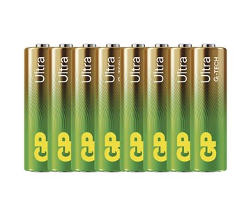chemické složení alkalické, kategorie/řada Ultra Alkaline, typ LR6 (tužka, AA), velikost baterie AA, napětí 1,5 V, možnost nabíjení ne, záruční doba 2 roky