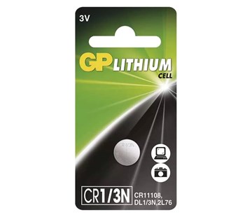 chemické složení lithiové, kategorie/řada Lithium, typ GP CR1/3N, napětí 3 V, možnost nabíjení ne, kapacita 160 mAh, rozměr 11,6 × 10,8 mm, hmotnost 3,3 g, provozní teplota -20 °C až +60 °C, max. skladovatelnost 10 let, cena za množství cena za 1 ks, prodejní obal 1 ks, blistr, záruční doba 2 roky