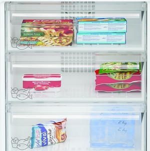 V dolní části spotřebiče se nachází mraznička o kapacitě 124 litrů vybavená 3 průhlednými zásuvkami. Za 24 hodin dokáže zamrazit až 6 kilogramů čerstvých potravin.