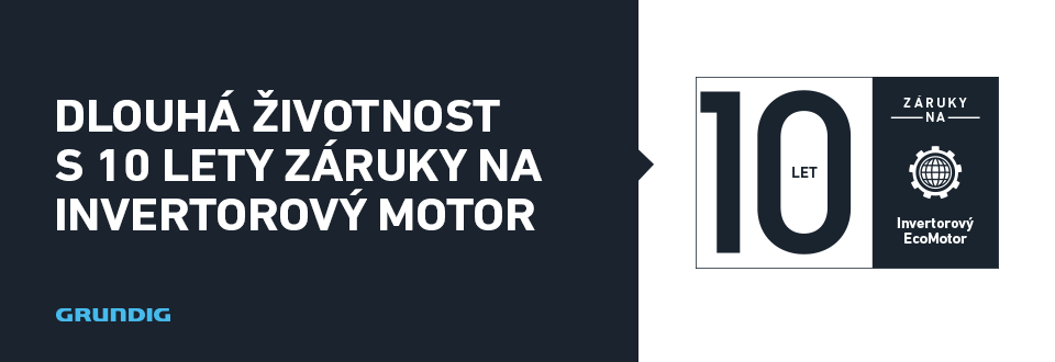 Dlouhá životnost spotřebičů Grundig je výsledkem pečlivého testování každého kroku výroby a těch nejvyšších nároků na součástky. Jsme si jistí, že svůj slib perfektní kvality splníme, proto poskytujeme k EcoMotor a EcoCompressor modelům 10 let záruky na motor či kompresor po registraci v registračním formuláři Grundig.