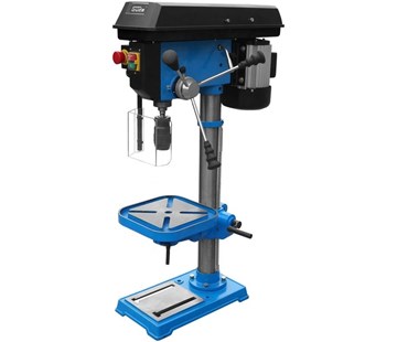 Robustní stolní vrtačka, určená k obrábění kovů, dřeva nebo plastů v podmínkách údržbářských/řemeslnických dílen, montážních provozů apod. 12 rychlostních stupňů otáčení vřetena (-> 210 - 2.500 ot./min.; změna otáček manuálně pomocí řemenic), rychloupínací sklíčidlo pro nástroje a vrtáky pr. 3 - 16 mm (-> házivost: < 0,02 mm).Nastavení hloubky vrtání (-> 1 - 80 mm; pro větší série obrobků), sklopný pracovní stůl (-> vrtání pod úhly; rozsah: ± 45°). Motor 800 W/P1 (-> 230 V~50 Hz, 1.400 ot./min., typ provozu: S2/15 min.; s hliníkovým pláštěm pro optimální odvod tepla), hlavní/nouzový vypínač, 2 m přípojný elektrický kabel H05 VV-F. Konstrukce: ocelové řemenice (3), vřeteno s kónickým úchytem/přesnými kuličkovými ložisky, kuželový trn MK2, masivní vrtací stůl (-> d x š: 260 x 260 mm; s příčnými drážkami pro upevnění svěráku), stojná deska z litiny (-> d x š: 240 x 410 mm, včetně vývrtů pro stacionární ukotvení vrtačky). Celkové rozměry (d x š x v): 650 x 340 x 1.010 mm, hladina akustického výkonu LWA: 71 dB (A), elektrická ochranná třída: IP 20. Doporučené příslušenství: strojní svěráky GÜDE 100 mm (38319), 125 mm (38320), 150 mm (38321); T-matice (38308), 8-dílná sada HSS vrtáků (38327).