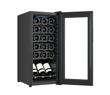 Ovládání je elektronické s digitálním termostatem. Na LED displeji v horní části tak okamžitě vidíte, jaká teplota je nastavená. Na výběr máte široké rozpětí teplot od 5 do 18 °C. Bílá a šumivá vína potřebují spíše nižší teploty, zatímco červená vyšší. O přesné udržování nastavené teploty se postará kompresor a ekologické chladivo R600a. |