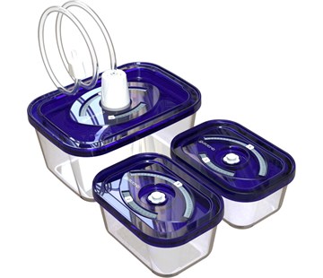 Set 3 skleněných vakuovacích nádob s hadičkou pro připojení k vakuovačce