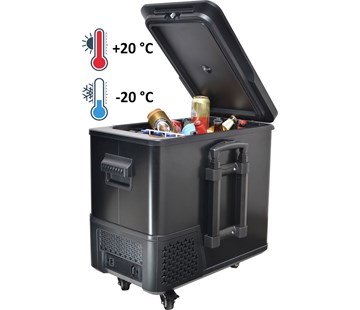 Tato chladnička a mraznička má také dostatečný prostor pro uskladnění potravin. S objemem 38 litrů nabízí dostatek místa pro vaše nákupy. Je vybavena čtyřmi kolečky a teleskopickým madlem pro snadnou manipulaci. Skvělou součástí je také zástrčka připojitelná do jakékoliv 12 či 24V zásuvky v automobilu, lodi či obytném přívěsu. Celé zařízení pracuje s napájením 12 / 24 V nebo 220–240 V přes adaptér. Disponuje LCD displejem a elektronickým ovládáním, což vám umožní snadno sledovat a nastavit teplotu a další funkce. Nechybí ani ochrana před úplným vybitím baterie či dětská pojistka. |