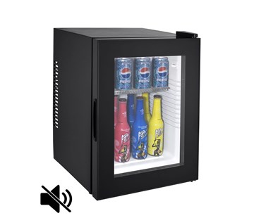 monoklimatická lednice - minibar • energetická třída G • objem chladničky 40 litrů • hlučnost 0 dB • technologie Heat Pipe bez hluku • vnitřní LED osvětlení • 2 police • termostat • průhledné okénko • extrémně nízká hlučnost – speciálně pro hotely, technologie chlazení bez použití kompresoru či ventilátoru, s využitím hliníkových článků • 55,5×40,5×44,3 cm