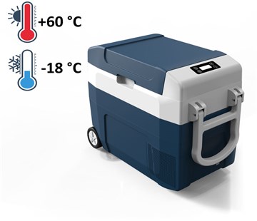 chladnička do auta • kompresorová technologie • teplota od –18 °C do +10 °C • funkce ohřívání až na +60 °C • kapacita 45 l • napájení 12/24 V, nebo 220–240 V • zástrčka připojitelná do jakékoliv 12V či 24V zásuvky v autě, na lodi či v obytném přívěsu • maximální příkon 70 W • sklopná madla • kolečka
