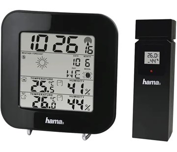 digitální meteostanice (základna/bezdrátový senzor), zobrazení venkovní a vnitřní teploty a vlhkosti vzduchu, předpovědi počasí, fáze měsíce, data a času, hodiny řízené rád.signálem DCF, indikátor komfortu pro vnitřní ovzduší, LCD displej, indikace kapacity baterií, dosah 30 m ve volném prostranství