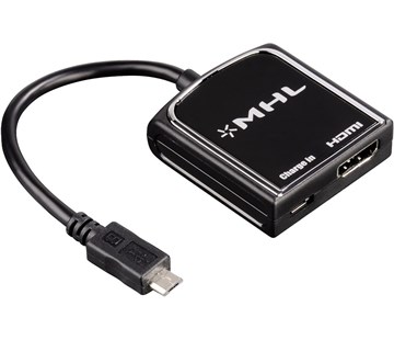 - adaptér pro přenos AV signálu z mobilního zařízení (smartphone, tablet) podporujícího technologii MHL do televizoru/monitoru