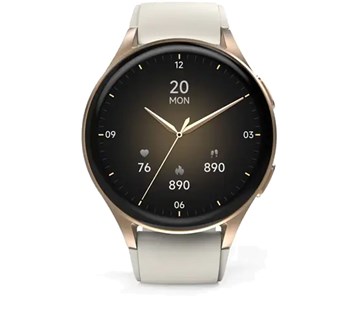 chytré hodinky • 1,32" barevný dotykový AMOLED displej • GPS • Bluetooth 5.3 • smart notifikace • senzor tepové frekvence • výpočet spálených kalorií • monitor denní aktivity a spánku • režimy pro 110 druhů sportu • kalendář • časovač • stopky • baterie Lithium Polymer 300 mAh • výdrž až 25 dní (v šetřícím režimu) • vodotěsnost IP68 • hmotnost 39,7 g • barva béžová/zlatá